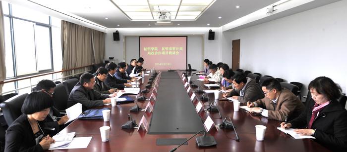 5月5日下午,昆明市审计局党组书记郭增敏带领副局长舒永恒、后文杰、易迎霞及相关处室负责人一行到我校商谈2014年局校合作事宜。商谈会在办公楼311会议室举行,副校长熊晶,监审处、计财处、工会及经济学院相关领导和中心钱春萍主任参加合作商谈。