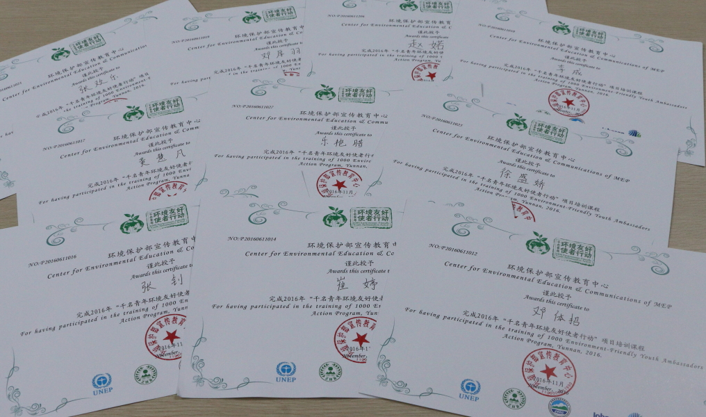 “2016年千名青年环境友好使者交流会”如期于11月26-27日在昆明市成功举办。云南省23所高校、37个社团的170余名青年环保志愿者参与了交流会,宣誓以“一传千,千传百万”,“播撒”环保种子。我校有10名青年志愿者入选参会,完成2016年“千名青年环境友好使者行动”项目培训课程。