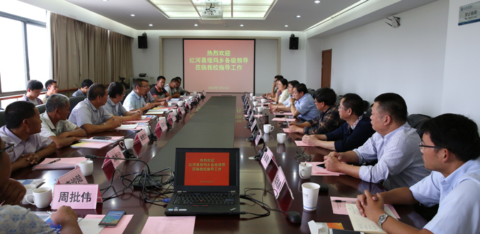 7月21日至22日,我校2015年新农村建设指导员派驻站红河县垤玛乡乡长周绕斌、副乡长朱王法率乡属相关部门,指导员派驻点垤玛村、曼培村、腊哈村村委会党政负责人和新农村建设指导员等一行19人到我校考察座谈。我校党委副书记孙勇会见来宾,党委组织部、校长办公室和新农村建设指导员派出单位人文学院、旅游学院、外国语学院党政负责人等参加座谈。