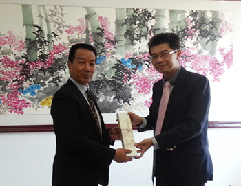 2015年4月7日上午,台湾嘉南药理大学国际暨两岸交流中心杨胜凯执行长、副教授兼董事会秘书余元杰博士一行访问我校。在参观了校园、滇池流域生态文化博物馆和医学院的教学实验室之后,我校副校长李翔、滇合中心办公室主任钱春萍、医学院院长余珊、国际交流合作处处长王文君、副处长陈静和学校相关部门及院系的老师与之会谈。会谈由我校副校长李翔主持。