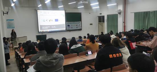 王博士在讲座中介绍和展示了全球生物多样性面临的挑战和困境,呼吁用更易于接受和理解的如绘画、视频等艺术方式,唤起更多的人群特别是大学生群体加入到生物多样性保护中。讲座中,王博士与学生积极互动,穿插运用问答、赠送其绘画作品等方式,让课堂生动有趣,学生们的回答也给项目方和听课教师带来很多启示。